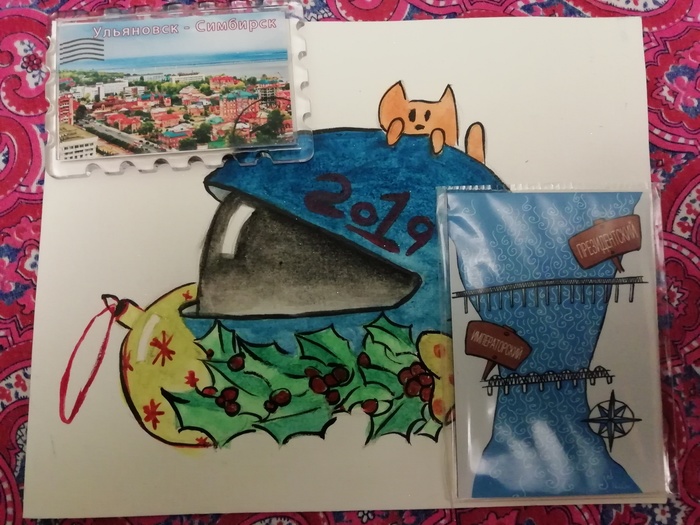 Вау! сразу же вижу нарисованную вручную открытку для байкера. Прослезился и поставил у себя на самое видное место. Спасибо! Оценил. Конфетки и шоколадки описывать не буду. Все понятно :) Спасибо!