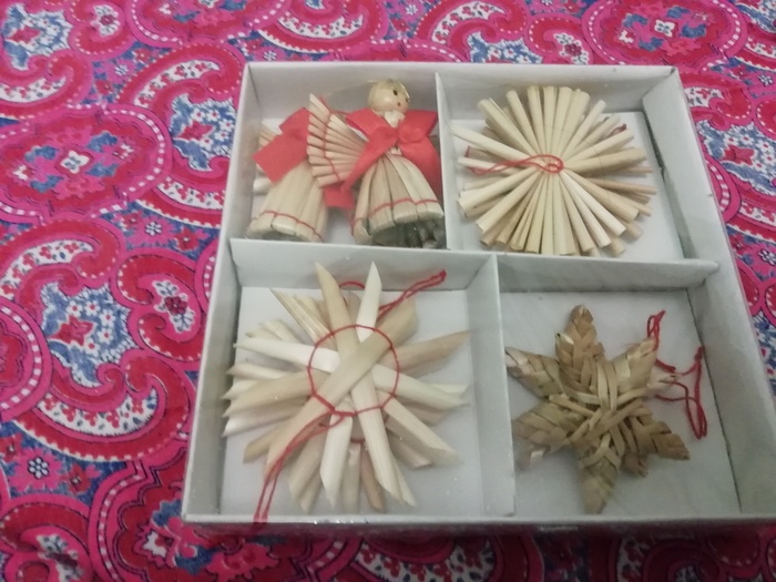 Оригинальные ёлочные игрушки из соломы - водружены на елку, на самое видное место