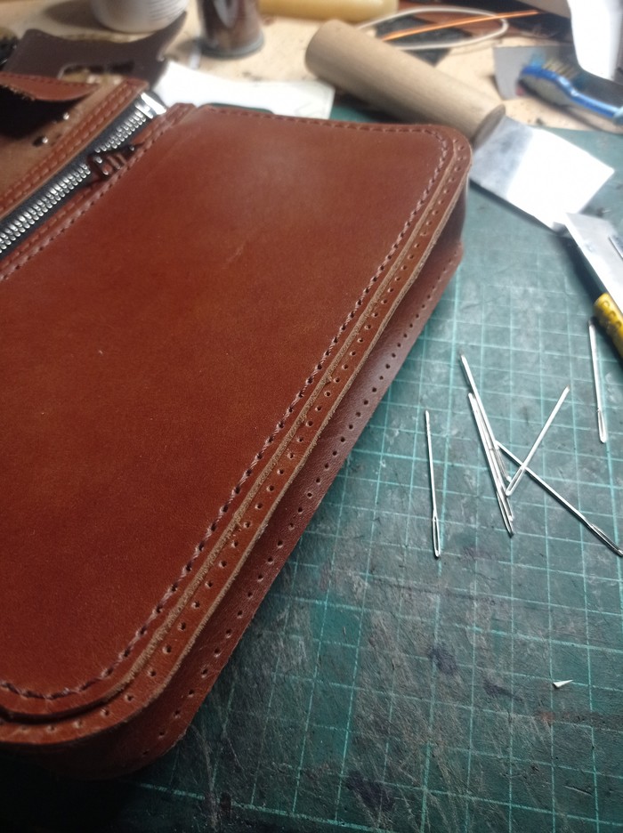 Изготовление этой сумочки немного затянулось — то отвлекали дела, то другие проекты. Но в итоге барсетка закончена. Ниже немного из процесса с комментариями.