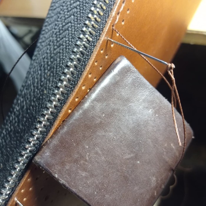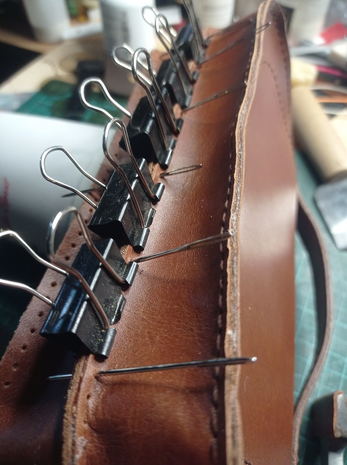 Прошиваю с использованием шорного пони. Сейчас, глядя на фото, подумал, что можно разнообразить было шов, сделав его крестиком.