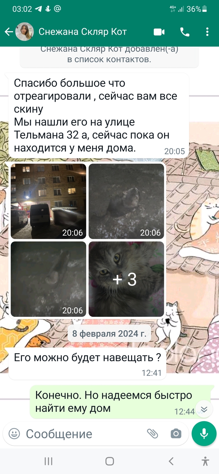8 февраля к нам обратилась девушка:.." нашла кота". Ночь. Холод. Снег.