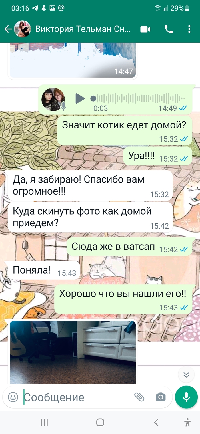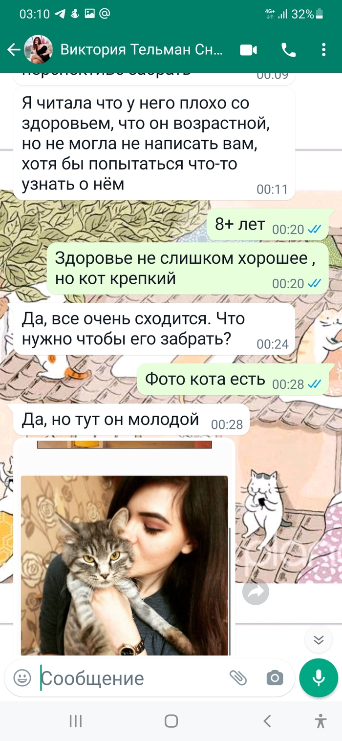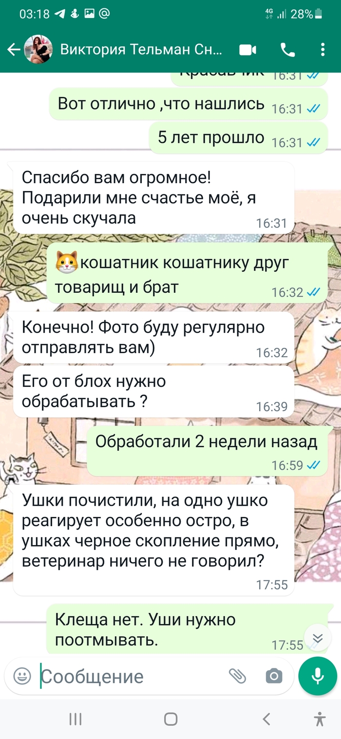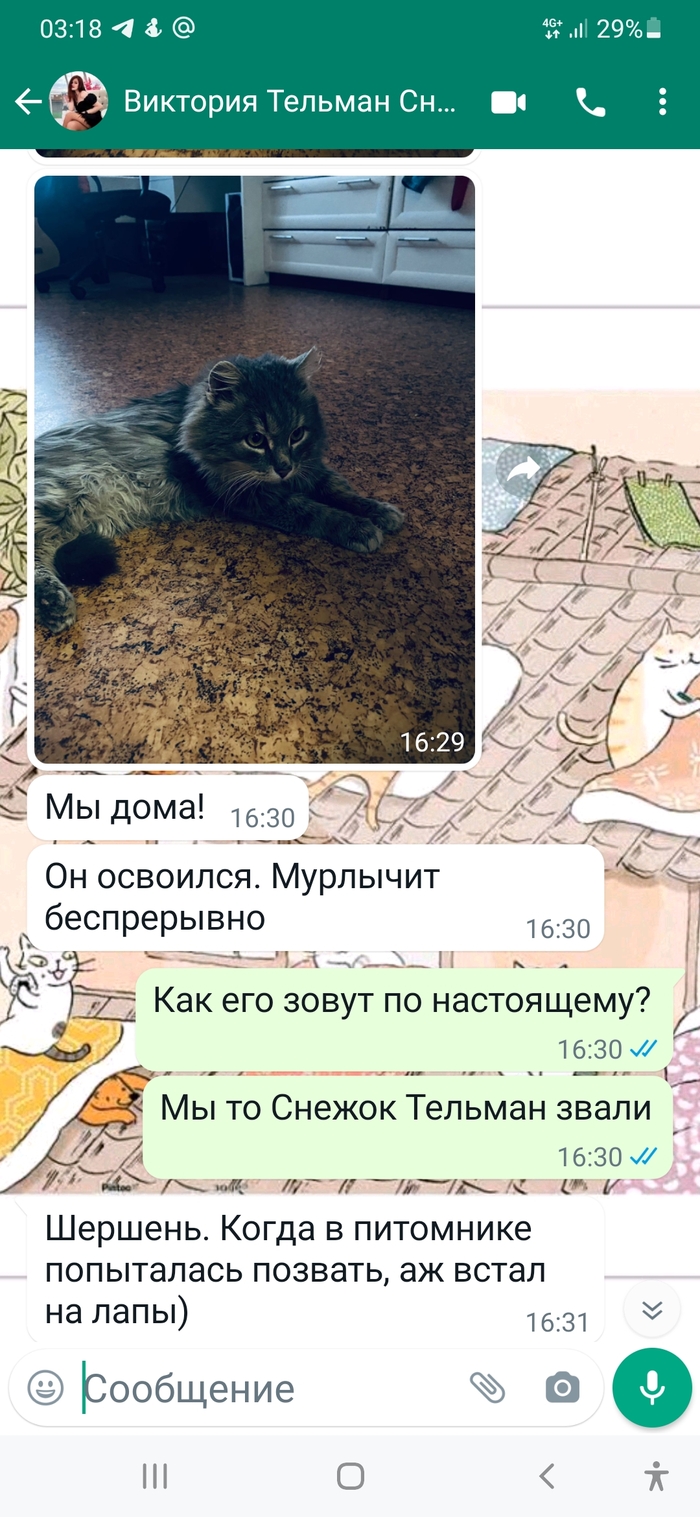 Рады за котика и его хозяйку...фото шлют нам каждый день.