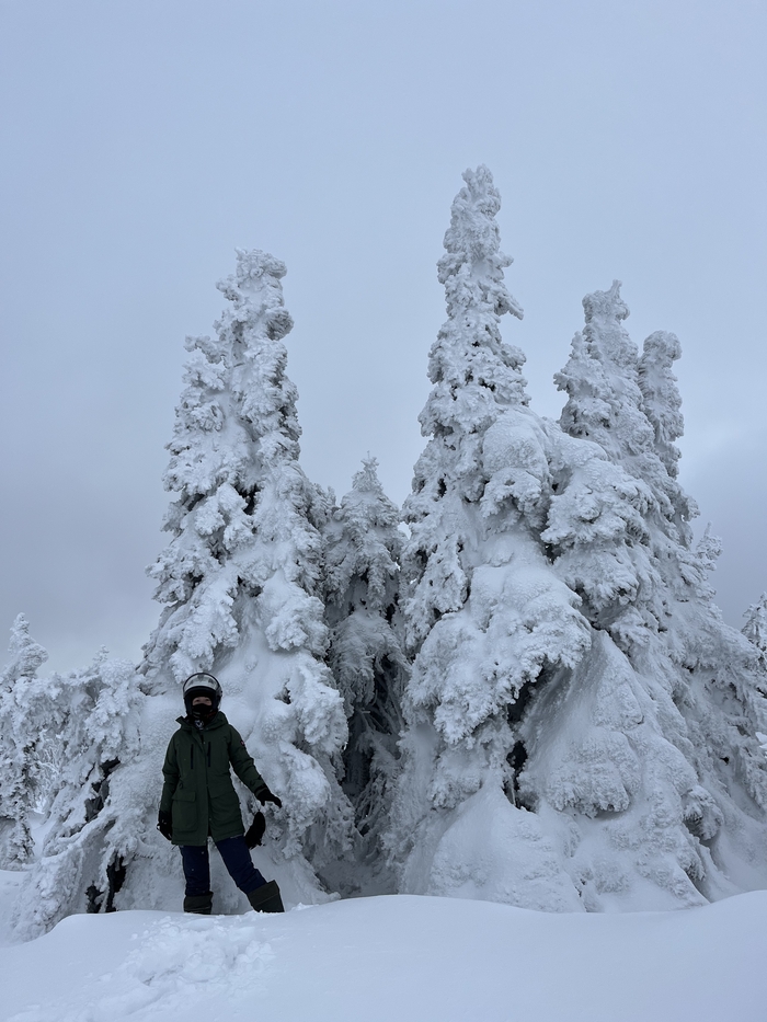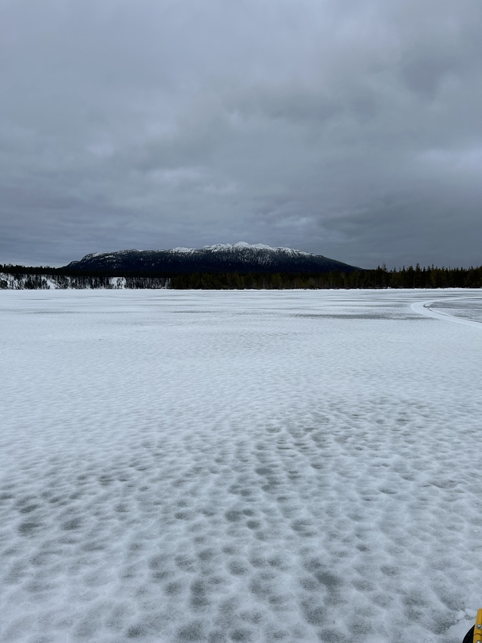 Тут ещё маленькое отступление: у нас до поездки сюда был небольшой опыт на снегоходах, около 20км. И не повезло с погодой: снега было мало, только в горах. Поэтому маршрут получился сложнее и менялся на ходу. Но мы справились, немного правда подпортили пластик снегоходу и оплачивали ущерб