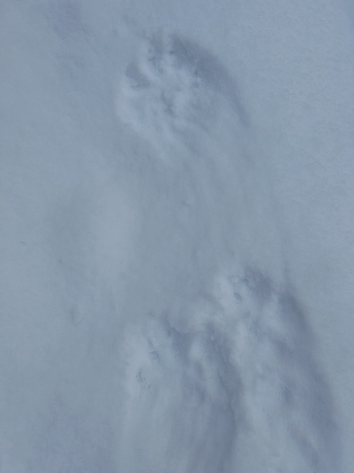 Немного следов. На вторых нам стало неуютно, потому что снег выпал пару часов назад, и это следы стаи