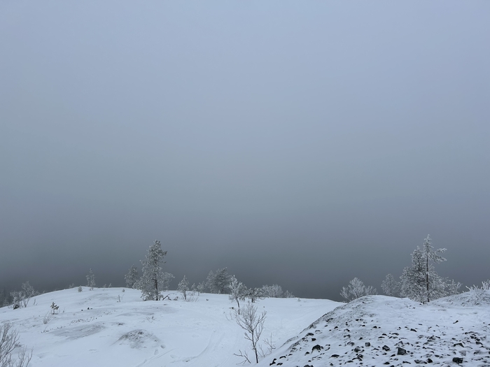Вершина луккулайсваара, на которую мы заезжали фактически по пешеходной тропе. Там мы в первый раз снегоход и грохнули :)