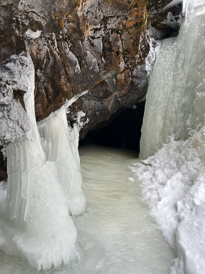 Ледяные пещеры на самом деле, это внутренности замерзшего водопада. Любопытные ощущения ты ходишь по льду, а под тобой течет вода, ты ее слышишь. И ходишь и думаешь - а вообще лед то крепкий? :)
