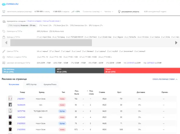 Бесплатный плаг бери и отслеживай ставки конкурентов по рекламе Прямо в кабинете ВБ дает статистику кампаний можно фильтровать запросы и смотреть CTR по ключевым словам. Ссылка evirma.ru