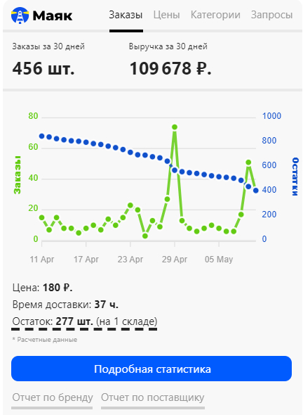 Крутой бесплатный тул для анализа конкурентов. Что дает в бесплатной версии? Показывает продажи конкурентов за 30 дней среднее время доставки остатки на складах изменения цен за месяц запросы и категории товара процент выкупа. Ссылка app.mayak.bz