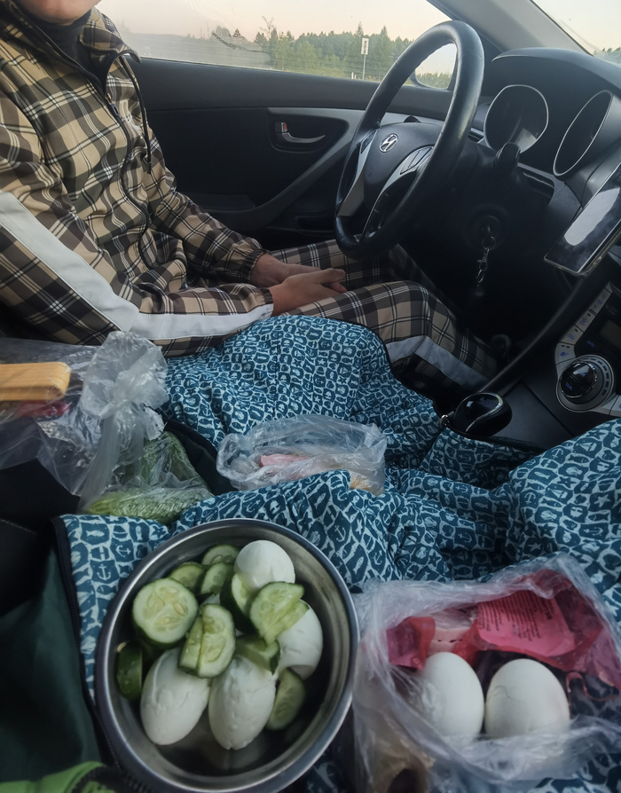 Мы останавливались в местных мини-отелях, ели в придорожках, готовили на газовой горелке макарошки с тушенкой и вкуснейший чай, ночевали в палатках, в машине и на остановке Южно-Сахалинска с укутанным в плед песёлем.