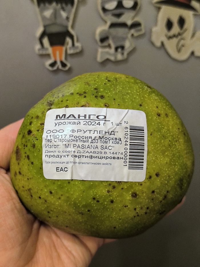 Дело в том, что свежего манго я ни разу в жизни не кушал. Странно, всегда думал, что у него жёлтая кожура.