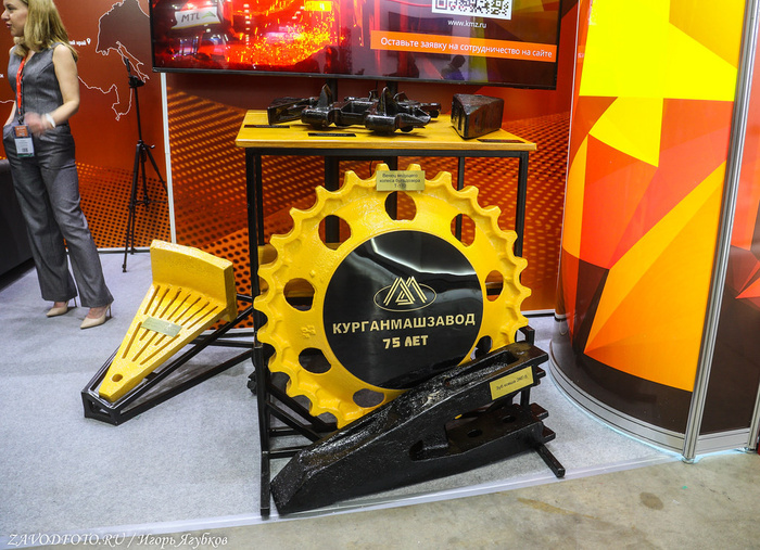 АО «Курганмашзавод» (с 2019 года входит в холдинг «Высокоточные комплексы» Госкорпорации Ростех) дебютировал на выставке MiningWorld Russia 2025 в Москве. Это предприятие выпускает гусеничную технику гражданского назначения и широкий спектр кузнечно-литейной продукции для различных отраслей промышленности. Мощности производственной площадки обеспечивают ежемесячный выпуск в объёме до 4000 тонн. Посетители их стенда смогли увидеть образцы продукции: зуб ковша экскаватора, венец ведущего колеса, элементы гусеничной ленты и секцию для мельниц. А так номенклатура освоенной кузнечно-литейной продукции, которую АО «Курганмашзавод» предлагает своим заказчикам, насчитывает более 20 тыс. наименований. Кстати, в этом году у компании 75-летний юбилей. Предприятие было основано в 1950 году как завод по производству тяжелых кранов. В 1954-м после перестройки производства КМЗ перешел на выпуск артиллерийских тягачей и массовой гражданской продукции.