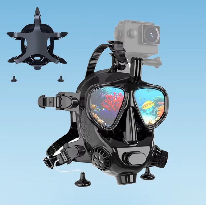 Полнолицевая силиконовая маска с панорамным обзором 180° позволяет комфортно наслаждаться подводным плаванием. Специальное покрытие предотвращает запотевание, а герметичный обтюратор надёжно защищает от попадания воды. Встроенное крепление позволяет зафиксировать экшн-камеру. Маска подойдёт для взрослых и подростков, даже при длительном использовании остаётся удобной.