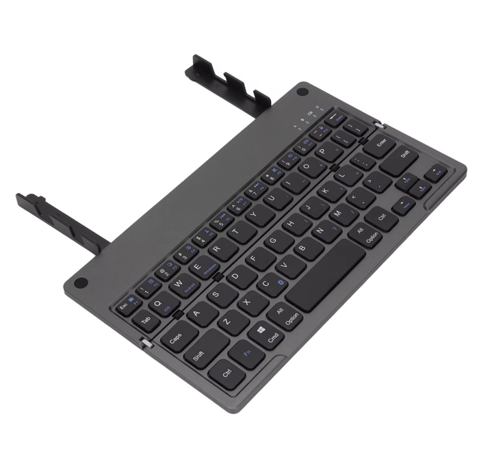 Складная беспроводная клавиатура с перезаряжаемой батареей на 140 мАч — идеальное решение для мобильной работы. Она легко помещается в карман или сумку и разворачивается в полноценную клавиатуру с подставкой для планшета или смартфона. Беспроводное подключение обеспечивает стабильную работу без лишних проводов. Удобный дизайн и чёткий отклик клавиш делают её отличным выбором для поездок и удалённой работы.