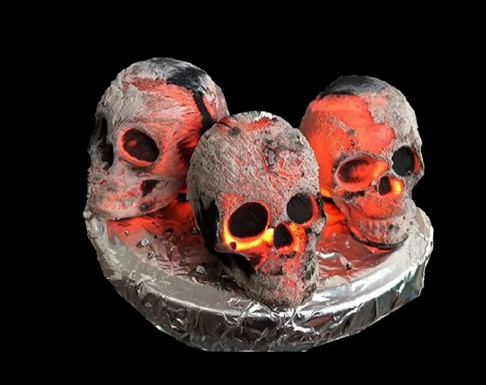 Необычный сувенирный уголь в виде черепа изготовлен из кокосового сырья и предназначен для кальяна. Он медленно тлеет, не выделяя резких запахов и постороннего вкуса. Упаковка из трёх брикетов станет оригинальным подарком или украшением кальянной вечеринки. Эффектный внешний вид привлекает внимание и подчёркивает атмосферу.
