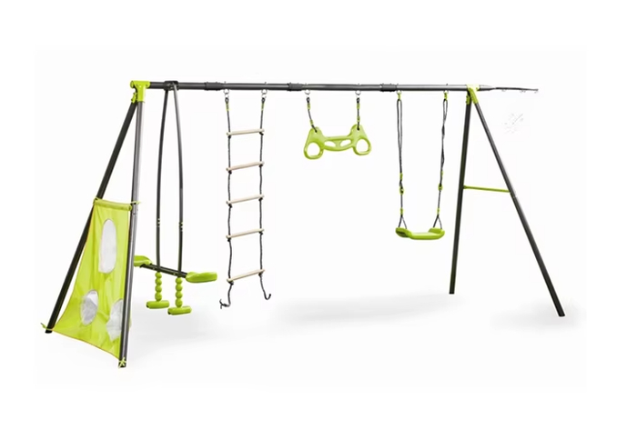 Детская площадка с качелями, горкой и альпинистским каркасом — идеальный выбор для активных игр на свежем воздухе. Комбинация дерева и металла обеспечивает надёжность и устойчивость конструкции. Пластиковые элементы устойчивы к погодным условиям и безопасны для малышей. Подходит для дач, садов и дворов, развивает координацию и двигательную активность.