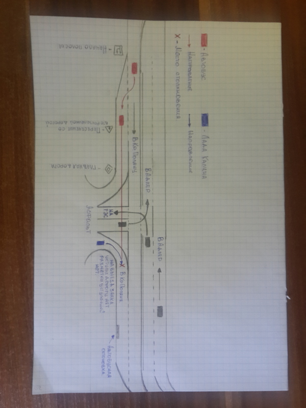 всем привет. друг попал в дтп. выезжал на калине на полосу разгона (синий). автобус (красный) перестроился на полосу торможения, и игнорируя разметку, проехал прямо, через островки и влетел в калину. гайцы говорят об обоюдке. может кто что посоветует? есть вариант доказать невиновность водителя калины?