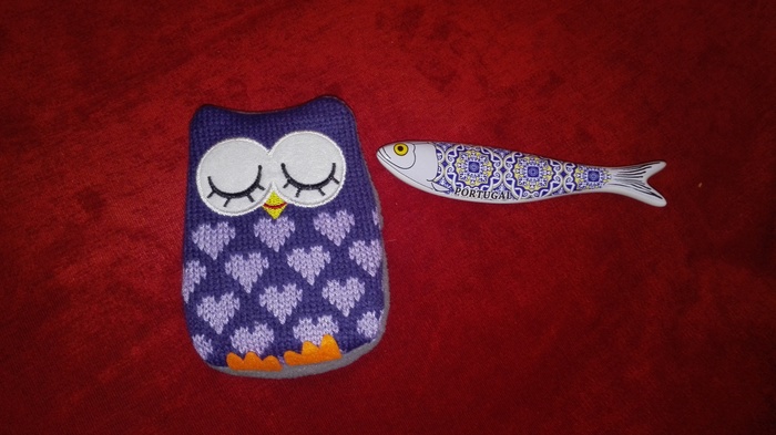 Мой супер-Дед Мороз учел все мои хотелки и прислал мне сову (рядом милейший магнитик, фарфоровая рыбка). Внутри у совушки химическая грелка, буду носить ее с собой, греть лапки.