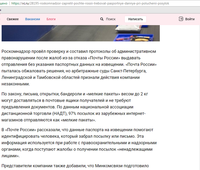 Некоторое время назад наткнулся на статью одного из российских изданий о незаконных действиях Почты России.