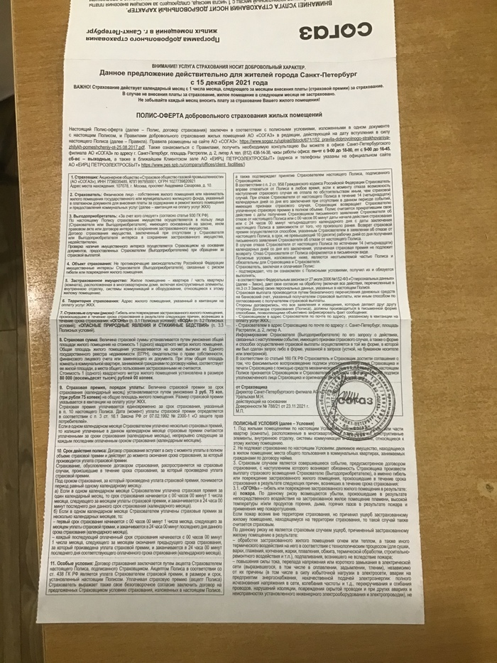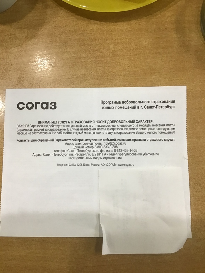 Получил сегодня интересное письмо в почтовый ящик от Согаз (это оказывается страховая компания), так вот они с ПетроЭлектроСбытом решили в пихнуть в квитанцию «Программа добровольного страхования жилых помещений в г. Санкт-Петербург»
