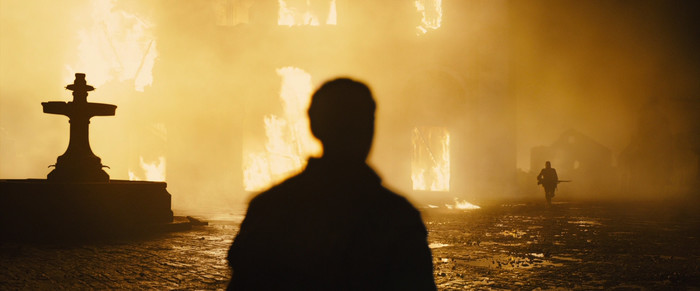 Но 1917 - это не только красивая картинка и замысловатый подтекст, это эмоциональное путешествие через субъективного опыта солдата. Нас проведут по войне: грязным, бесконечным окопам, лабиринту разрушенного города, ничейной земле. Крысы, трупы, пустые дома и окна, колючая проволока, воронки от взрывов - всё таит опасность, и даже от неба пощады не жди. Что ты чувствуешь в цветущем саду? А что чувствуешь, когда твоя порезанная рука проваливается в гниющий труп?