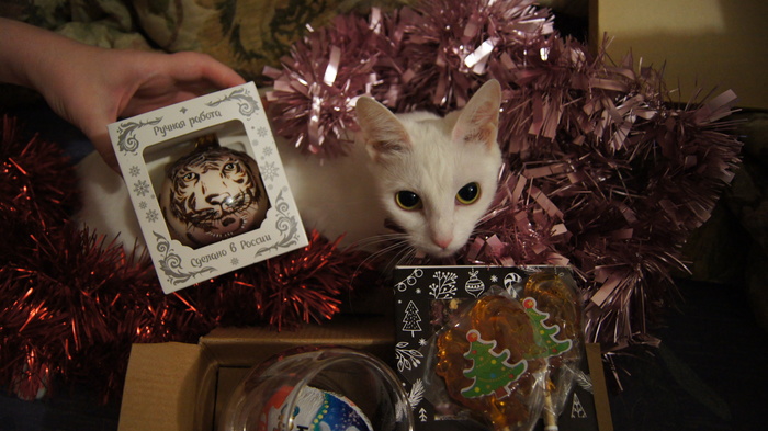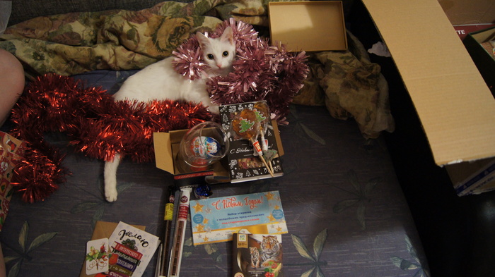 Новогоднее настроение... нет, не так - НОВОГОДНЕЕ ЧУДО, СЧАСТЬЕ И МОРЕ РАДОСТИ, вот что мы испытали получив наш подарок! Первой туда залезла наша кошка, она сразу поняла что там что-то волшебное и необыкновенное. Подарок собран с теплотой и посылом добра, это чувствовалось в каждой коробочке и даже конфетке которые мы доставали из коробки)