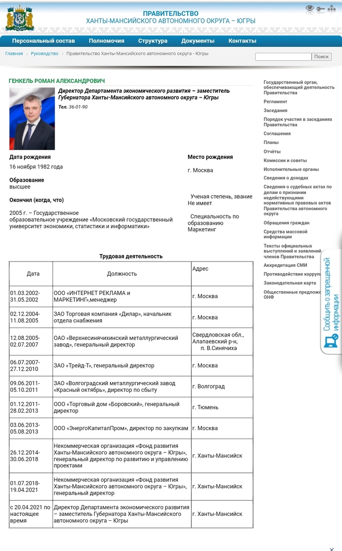 Большинству жителей Югры Роман Генкель известен в большей степени как руководить совершенно материальных организаций и департаментов. С 2014 по 2021 год Роман Александрович работал в некомерческой организации «Фонд развития Ханты-Мансийского автономного округа – Югры», последнии три года в качестве генерального директора. С апреля 2021 года по настоящее время Генкель является директором департамента экономического развития Югры и заместителем губернатора Натальи Комаровой.