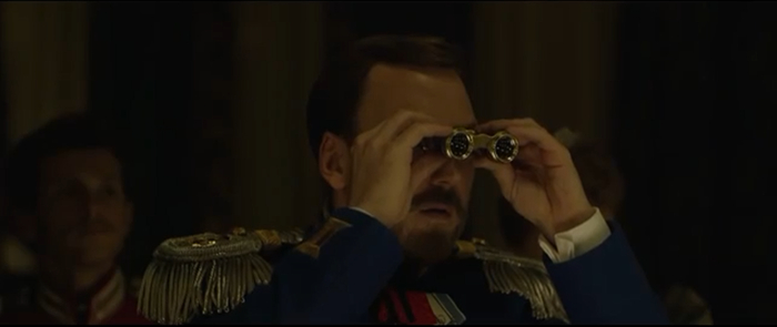 Мудацкий российский монтаж и наступает лето, хрен знает какого года. Ипподром, Николай сидя в ложе пялится в подзорную трубу на Матильду, та чувствую похотливый взгляд императора оборачивается и улыбается ему. Наталья Поклонская снова негодует и падает в обморок.