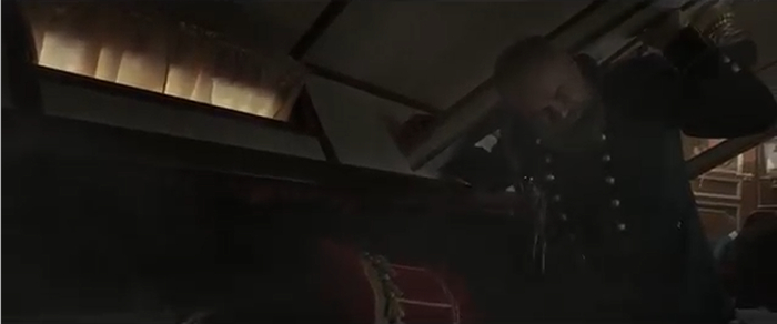 Наконец, вся августейшая семья спасается, а императора которого накрыло крышей вагона, вытаскивают казаки. Все, конец этой чрезвычайно нужной для сюжета сцены.