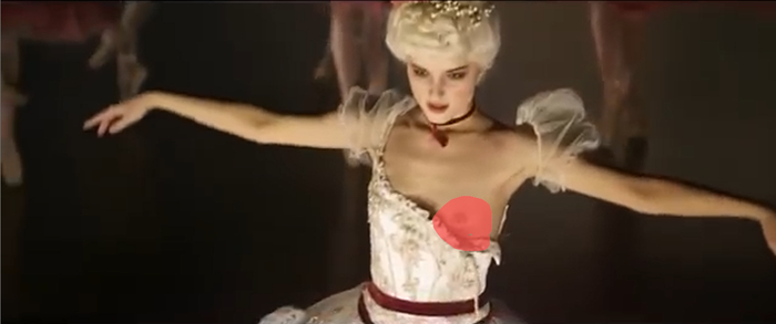 За кулисами, итальянка получившая свою долю оваций, обнимает Матильду, лицемерно ей улыбается, а после этого развязывает ей бретельки лифчика. Матильда, не заметив этого, выходит на сцену начинает танцевать под красивейшую музыку и конечно же под слоумо, выписывая блистательные пируэты.
