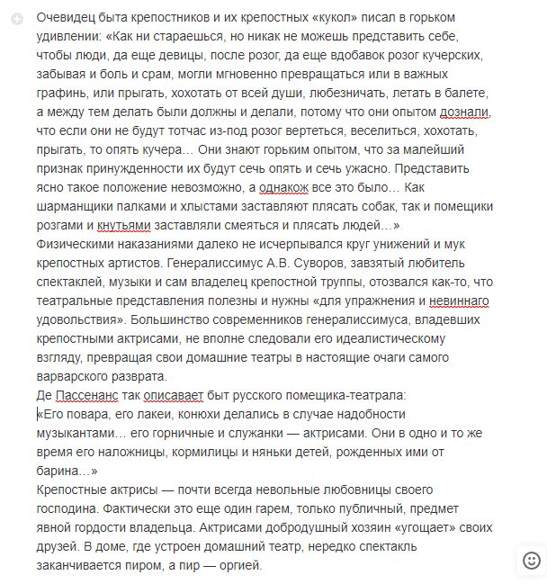 В.И. Семевский писал, что нередко все женское население какой-нибудь усадьбы насильно растлевалось для удовлетворения господской похоти. Некоторые помещики, не жившие у себя в имениях, а проводившие жизнь за границей или в столице, специально приезжали в свои владения только на короткое время для гнусных целей. В день приезда управляющий должен был предоставить помещику полный список всех подросших за время отсутствия господина крестьянских девушек, и тот забирал себе каждую из них на несколько дней: