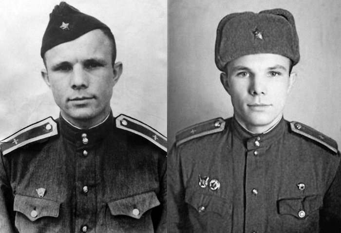 27 октября 1955 года Гагарин был призван в Советскую армию и направлен в Чкалов (ныне Оренбург), в 1-е военное авиационное училище летчиков имени К. Е. Ворошилова. Обучался Гагарин у известного в те времена летчика-испытателя Я. Ш. Акбулатова. Несмотря на некоторые сложности, возникавшие в процессе обучения, 25 октября 1957 года Гагарин окончил училище с отличием. В течение двух лет служил в Луостари (Мурманская область) в 769-м истребительном авиационном полку 122-й истребительной авиационной дивизии ВВС Северного флота, вооруженном самолетами МиГ-15бис. К октябрю 1959 года налетал в общей сложности 265 часов. Имел квалификацию «Военный летчик 1-го класса». Воинское звание старший лейтенант.