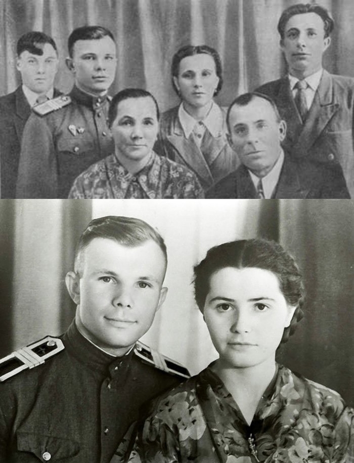Семья и личная жизнь Юрия Гагарина: Дед - Тимофей Матвеевич Матвеев, рабочий Путиловского завода, революционер. Отец - Алексей Иванович Гагарин (1902-1973), плотник. Мать - Анна Тимофеевна Матвеева (1903-1984), работала на молочнотоварной ферме. Сестра - Зоя Алексеевна Гагарина (в замужестве Бруевич, 1927-2004), работала медсестрой в Гжатской больнице. Ее дочь, Филатова Тамара Дмитриевна - заведующая отделом Музея Ю. А. Гагарина (г. Гагарин). Братья: Борис Алексеевич Гагарин (1936-1977), рабочий Гжатского радиолампового завода. Валентин Алексеевич Гагарин (1924-2006), плотник. Жена - Валентина Ивановна Гагарина (1935-2020), до брака - Горячева (поженились в 1957 году в Оренбурге), работала в лаборатории Медицинского управления Центра управления полетом. На пенсии. В Оренбурге, в доме, где жила семья Валентины, впоследствии был открыт Музей-квартира Юрия и Валентины Гагариных.