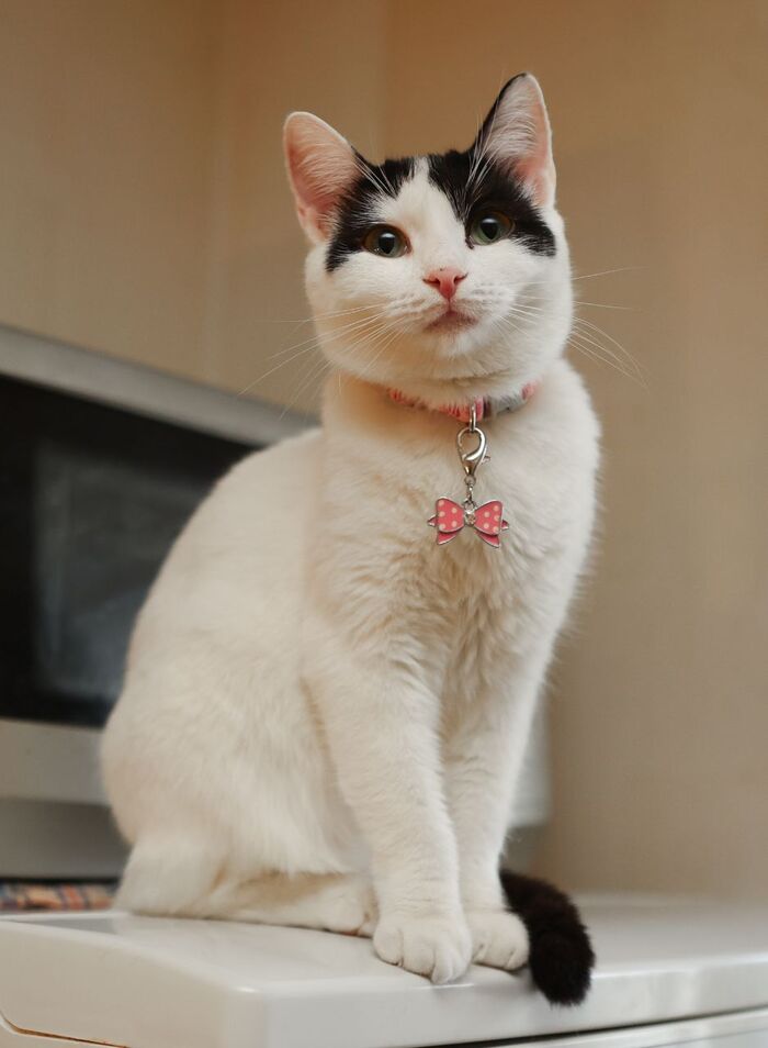 Боне 8 месяцев. Она стерилизована, лоток и когтеточку знает. Со здоровьем проблем нет. Ест сухой и влажный корм.