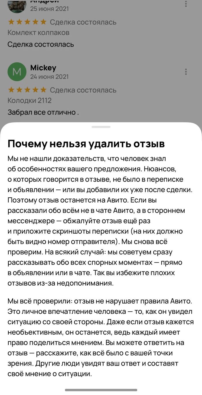 При обжалование отзыва Авито опять выдало высер отказной, что мол все хорошо, человек оставил свое мнение!