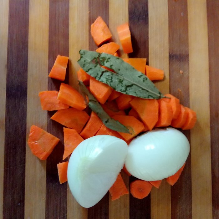 5) Не скупитесь на овощи. Если у вас таки есть что положить в бульон, то положите туда еще луковицу, морковку, сельдерей, корень петрушки... Ну или что из этого есть. А еще пару лавровых листов и горошин душистого перца.