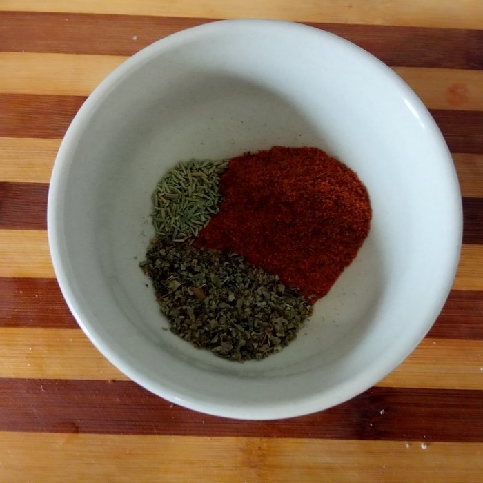Поджарилось? Сварилось? Хорошо. Соединяем. На этом этапе стоит посолить и добавить пряностей (а так же бульонный кубик, если готовите на нём). Черный и красный перец, соль - по вкусу. С солью осторожно. А не как я. Базилик, орегано, петрушка - не помешают. Особенно - петрушка. Ну и ещё укроп. Люблю я укроп. Очень рекомендую розмарин. 1/2-1 чайную ложку. Паприка тоже лишней не будет. Но если у вас нет пряностей, окромя чёрного перца -это не страшно. Разрешаю бросить только его. Свежую зелень бросайте перед снятием кастрюли с плиты. А то и вовсе - в тарелку.
