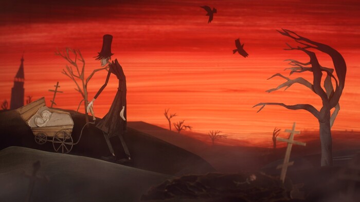 Графически «Гробовщик» представляет из себя оммаж Тиму Бертону. Также стоит отметить шикарную технику анимации и использование фигурок из бумаги.