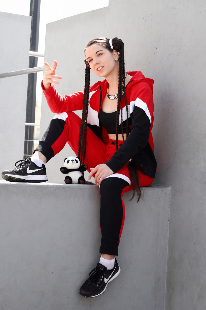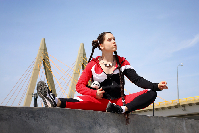 В далёком 2021 году я наконец-то купила себе красивый спортивный костюм и осознала, что он похож (на самом деле, только цветом :D) на арт, который я приметила ещё в 2016. Так мы и решили отснять спортивную версию Мэй Чанг, а получилась какая-то несанкционированная реклама Nike :D