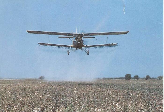 В 1952 г. экипажи Ан-2 Украинского, Московского и Узбекского управлений ГВФ впервые провели корневую подкормку и дефолиацию хлопчатника в колхозах и совхозах Узбекистана. В тот же год в Туркмении и Узбекистане с помощью этих машин приступили к аэросеву черного саксаула, чермеза и кандыма. В течение трех лет растениями было засеяно 15 тыс. га. В 1954 г. с целью улучшения поедания травы животными Ан-2 подсолили 680 га лугов в Архангельской области. Сколь не дико это звучит в наше время, но для повышения урожайности и ускорения созревания хлопчатника на опытных полях Узбекистана выполнялась их обработка радиоактивными веществами. В те же годы Ан-2 были впервые задействованы в борьбе с вредителями садов и виноградников в Молдавии и Грузии. В1958 г. с помощью Ан-2 боролись с сорняками льна в Ивановской и Ярославской областях, а в 1961 г. 9 Ан-2 обработали 119 тыс. га полей гороха в Винницкой области, защитив их от опасного вредителя - гороховой зерновки.