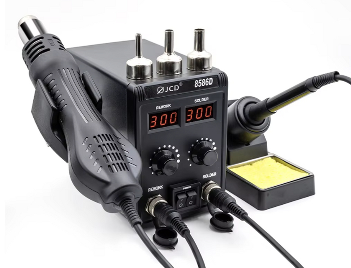 Эта профессиональная паяльная станция объединяет в себе мощный паяльник и термофен, что делает её незаменимым инструментом для пайки и ремонта электроники. Паяльник с регулируемой температурой позволяет работать с мелкими компонентами, а термофен идеально подходит для демонтажа микросхем.