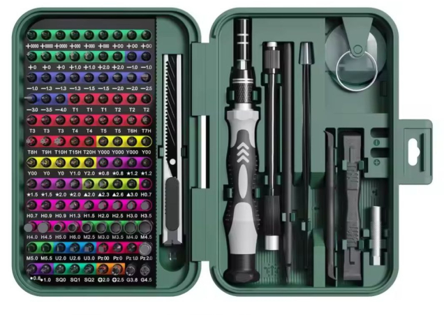 Этот комплект включает в себя специализированные отвертки, лопатки, присоски и другие инструменты, необходимые для аккуратного вскрытия и сборки смартфонов, планшетов, ноутбуков и бытовой электроники.