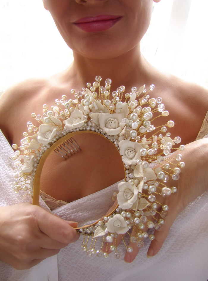 Похвастаюсь свадебной короной, которую я делала некогда для заказчицы-невесты.
