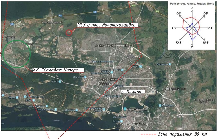 Да я понимаю около нас ёще стоит большой завод "Оргсинтез", у нас и так проблемы с экологией но всё же не хочется дышать дополнительной порцией яда от МСЗ. Власти конечно обещают, что там будут фильтры и не будет вреда от МСЗ, но ни кто им не верит. И ещё одно согласно розе ветров г. Казани преобладающее направление ветра для нашего города как раз способствует тому, что все выбросы с будущего МСЗ будут идти прямиком в густонаселённые районы. Вот такая ситуация у нас разворичивается.