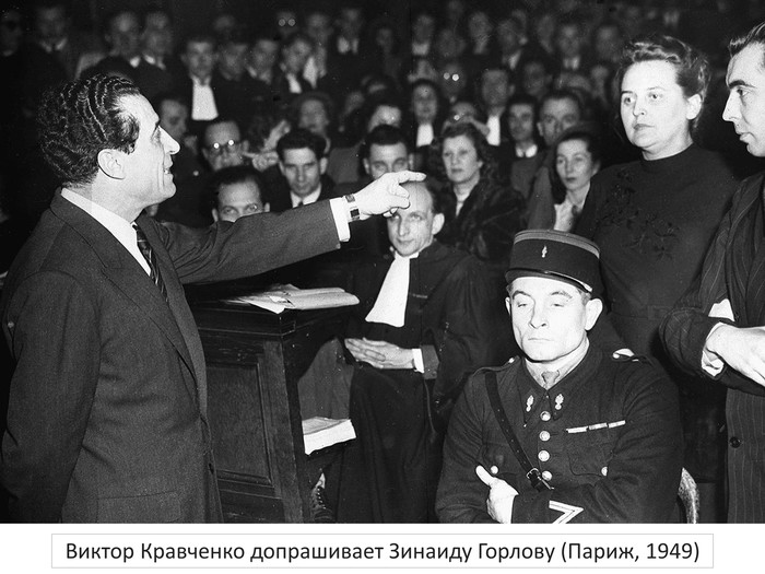 Наши притащили в Париж на суд жену Кравченко Зинку, которая с ним ещё до войны развелась. Зинка после развода ещё раз замуж вышла. Ну, Зинка против него показания давала, чушь всякую несла, что он её избивал и прочее. Никого он конечно не избивал, интеллигентный инженер был. А развелись они из-за того, что он перед ней калитку не открывал. После поездки в Париж она знаменитая стала, мне её на улице как-то показали. Высокая такая, эффектная блондинка.