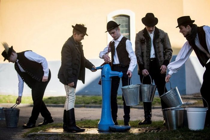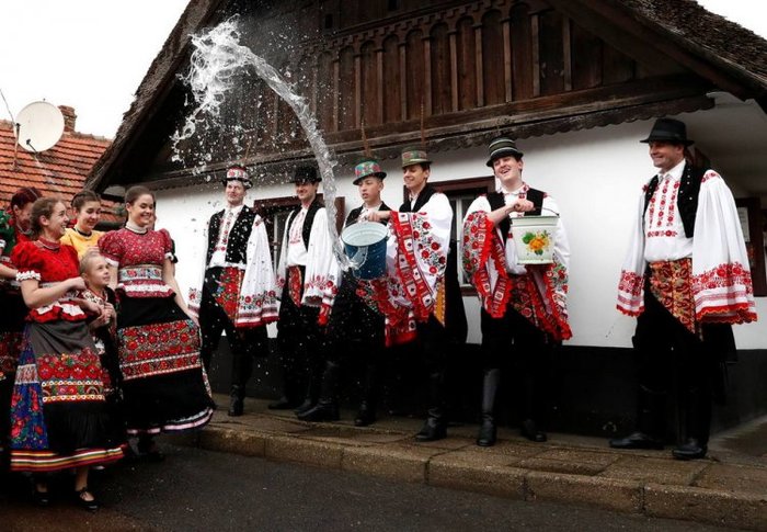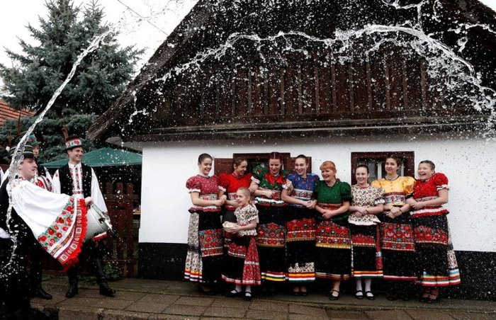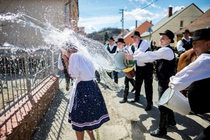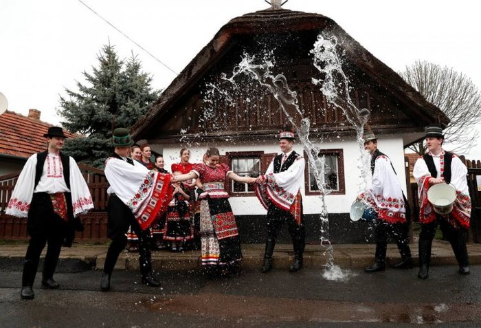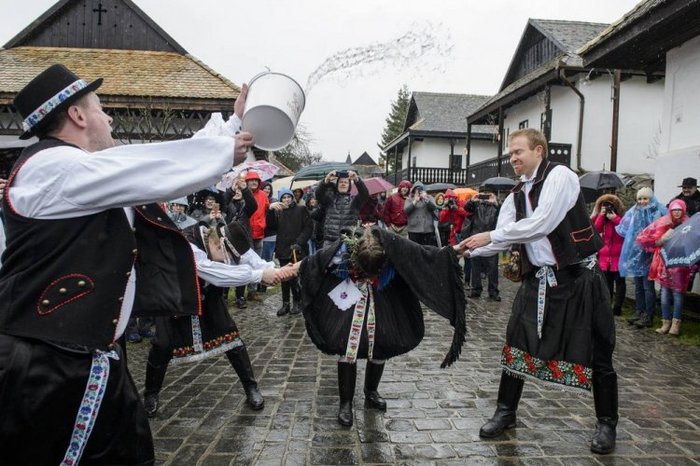 В венгерских деревнях существует интересная традиция, которая насчитывает несколько сотен лет. В пасхальный понедельник молодые люди поливают водой молодых женщин, а затем обменивают ведра на красиво окрашенные яйца.