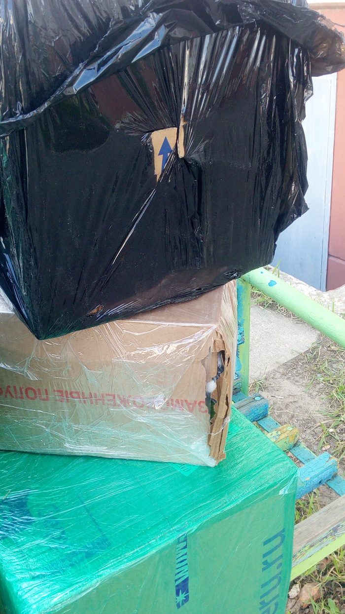 Верхняя коробка вскрыта и снова замотана стрейчем. Водитель следов вскрытия не увидел, хотя даже через стрейч видно, что это две половины коробки. Все коробки мятые и рваные. Знаю, такое бывает и это скорее норма, но напоминаю, что мои коробки ехали не сами по себе и грузчики их теоретически не швыряли через полсклада. Мои коробки с пожитками были уложены на паллет, поэтому я не очень понимаю, как они могли покорежиться со всех сторон?