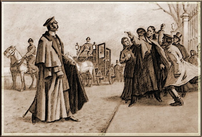 Место: Санкт-Петербург, в окрестностях Зимнего дворца во время утренней прогулки императора