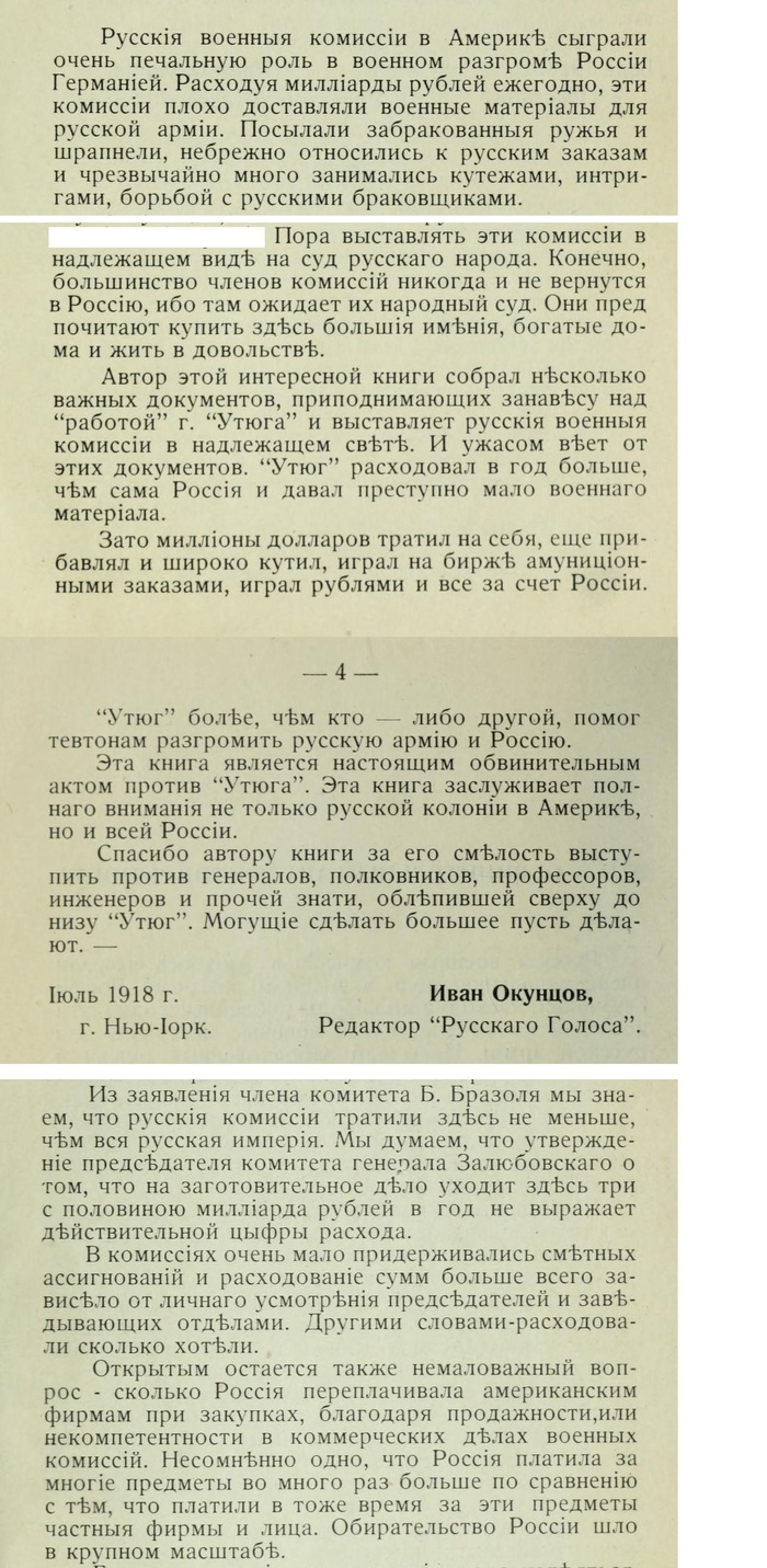 Источник: М. И. Гайдук. "Утюг. Матерiалы и факты о заготовительной дѣятельности русских военных комиссiй в Америкѣ." Нью-Iорк. 1918 г.