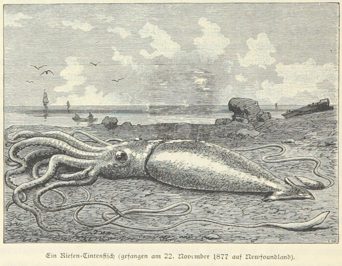Гигантский кальмар, выловленный у берегов Ньюфаундленда, 1877 год