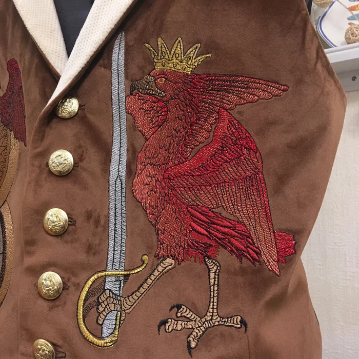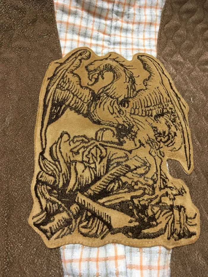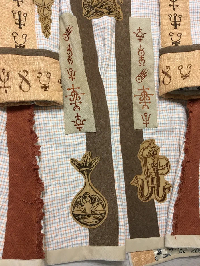 Каждая аппликация и заплата вышивалась отдельно и нашивалась на халат.